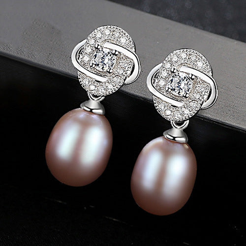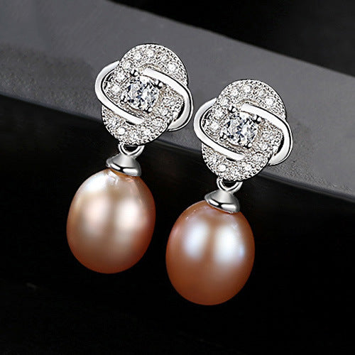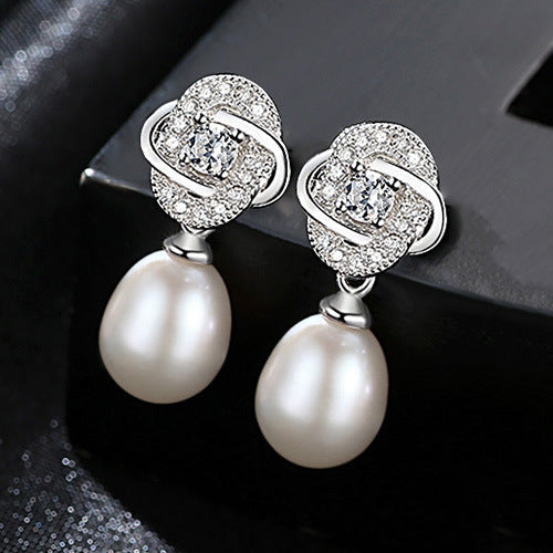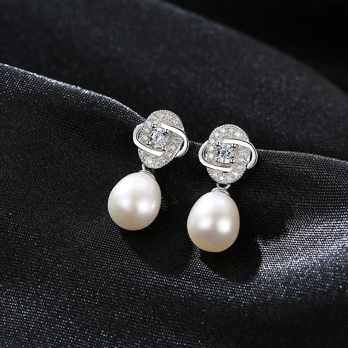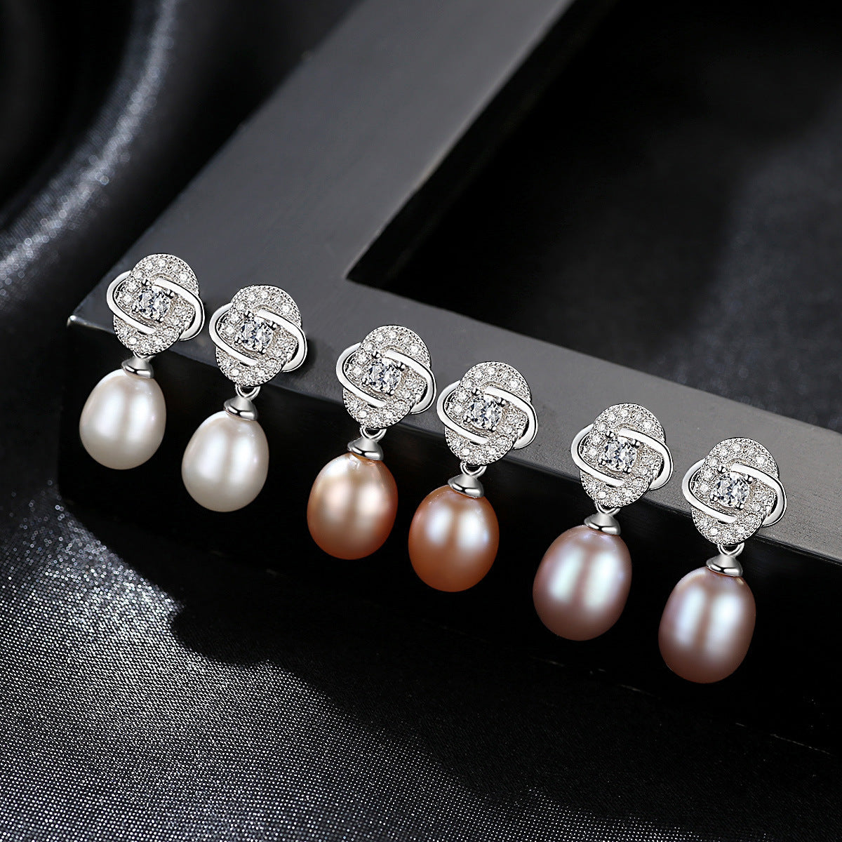 Aetolia 925 Sterling Silver Natural Freshwater Pearl Earrings Solitaire CZ Diamond Drop Stud Earrings FE0066