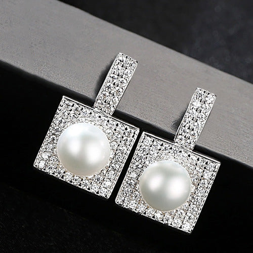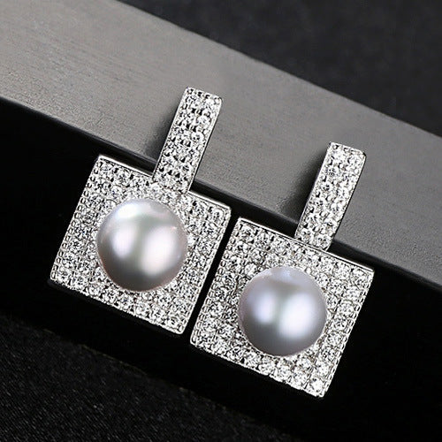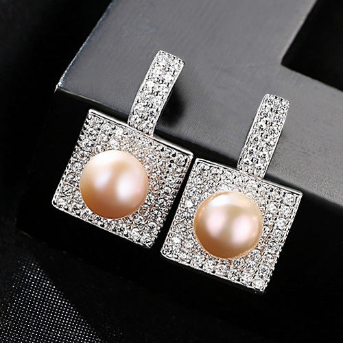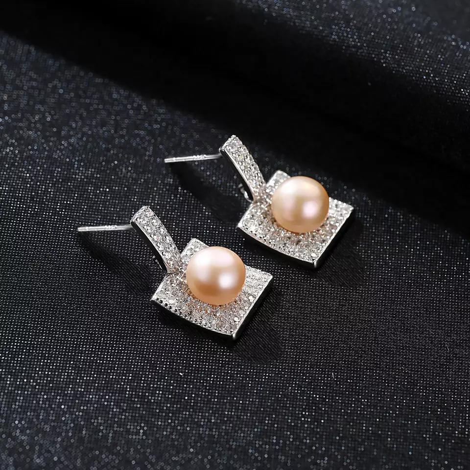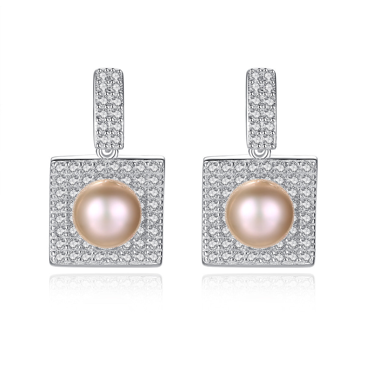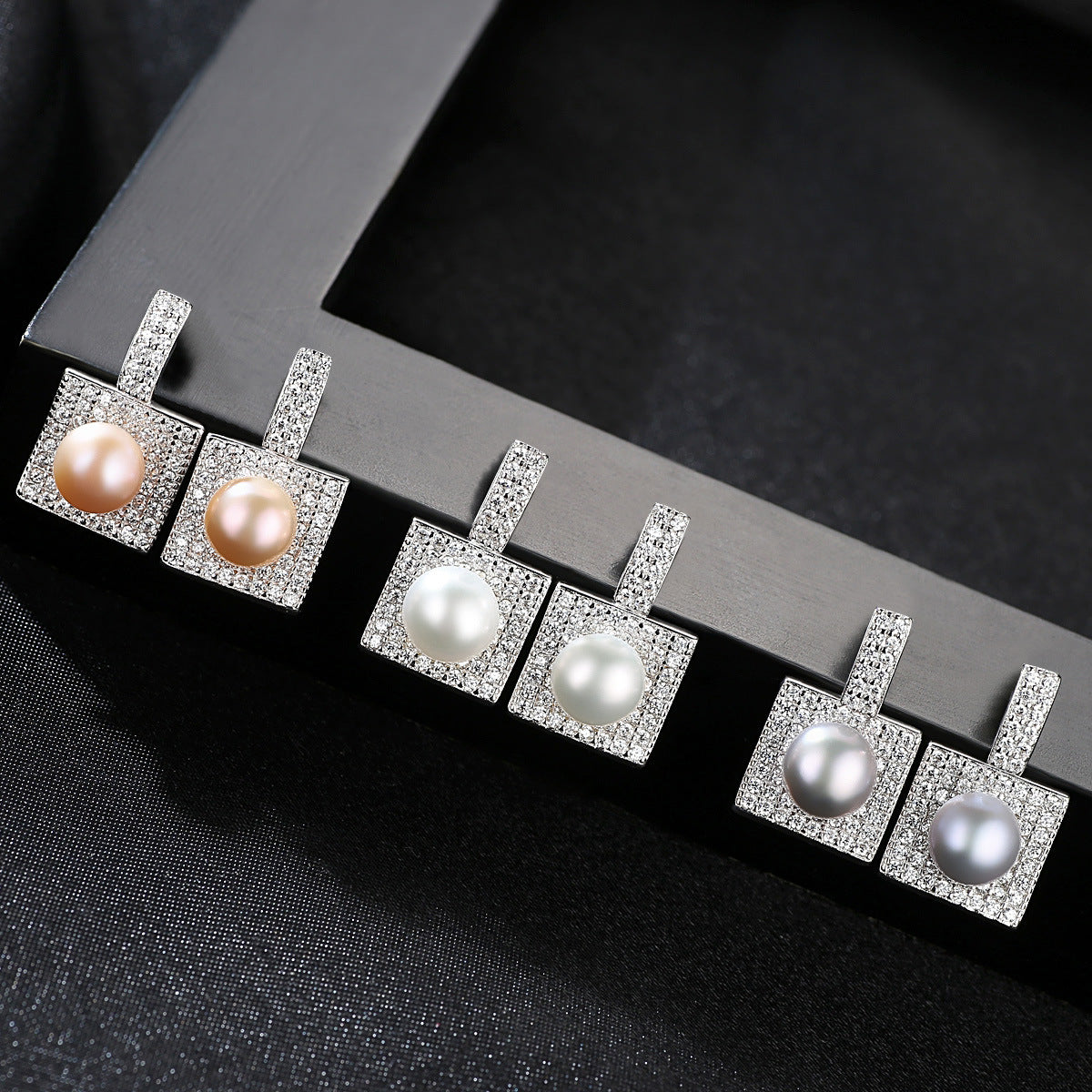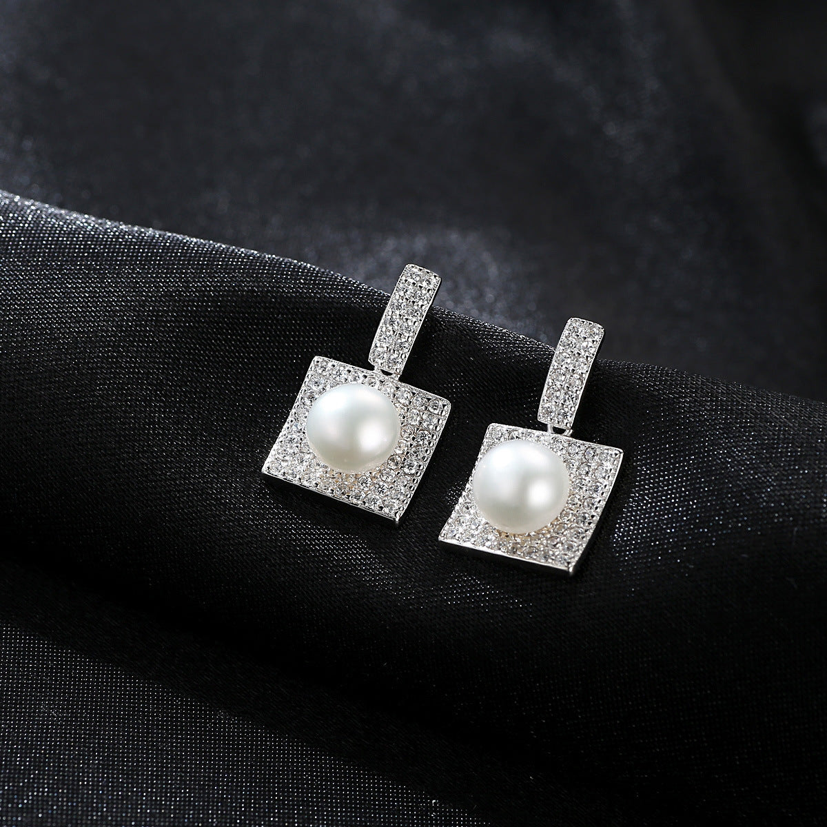 Aetolia 925 Sterling Silver Natural Freshwater Pearl Earrings Square Halo Stud Earrings FE0063