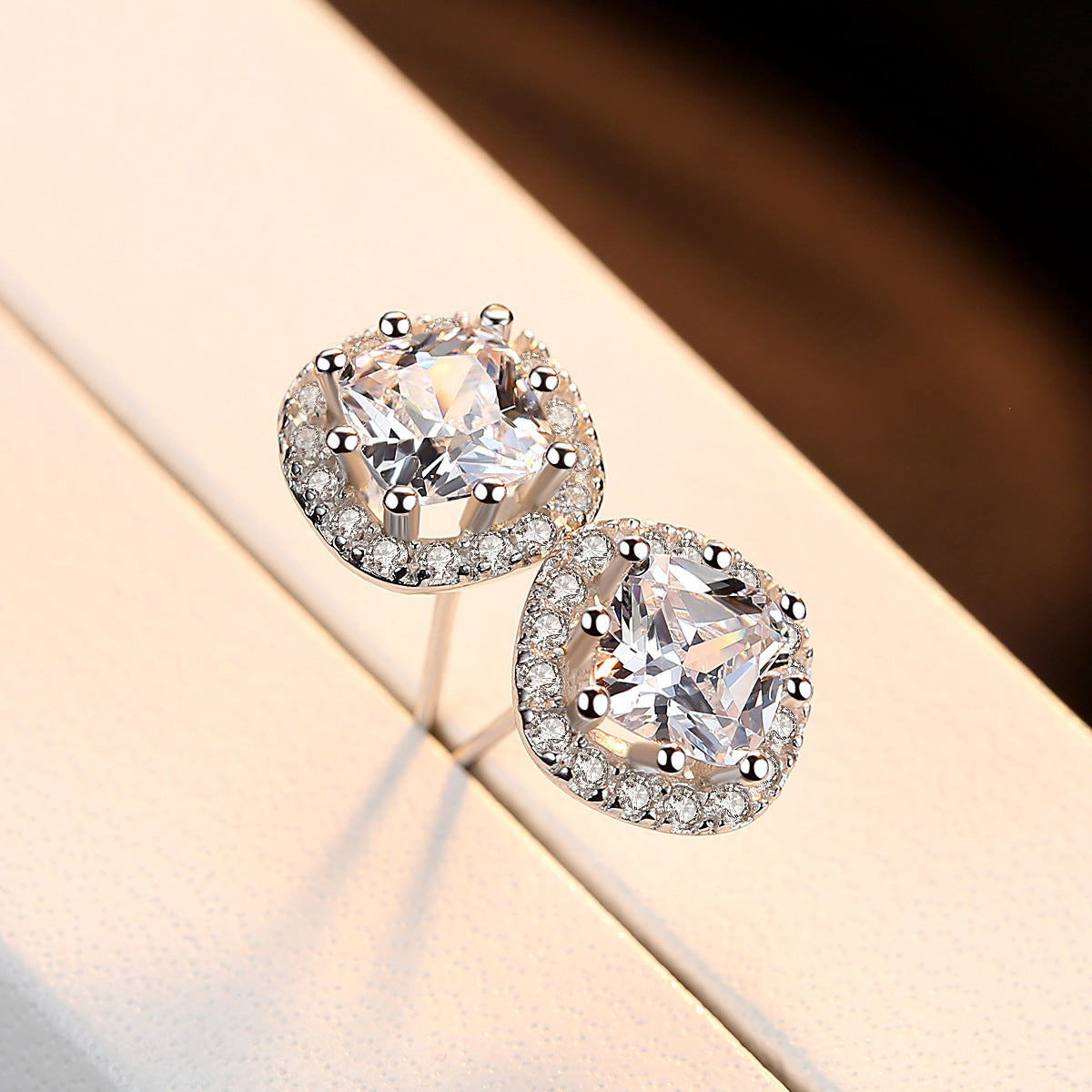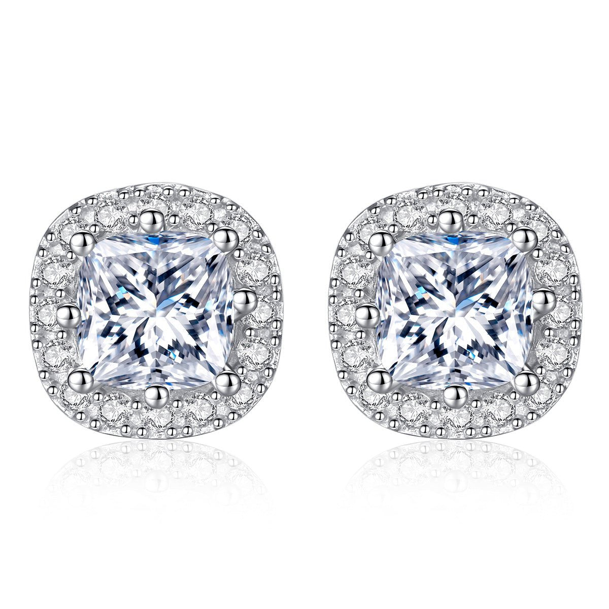 Aetolia 925 Sterling Silver 18K Gold Plated Square Halo Stud Earrings SE0034