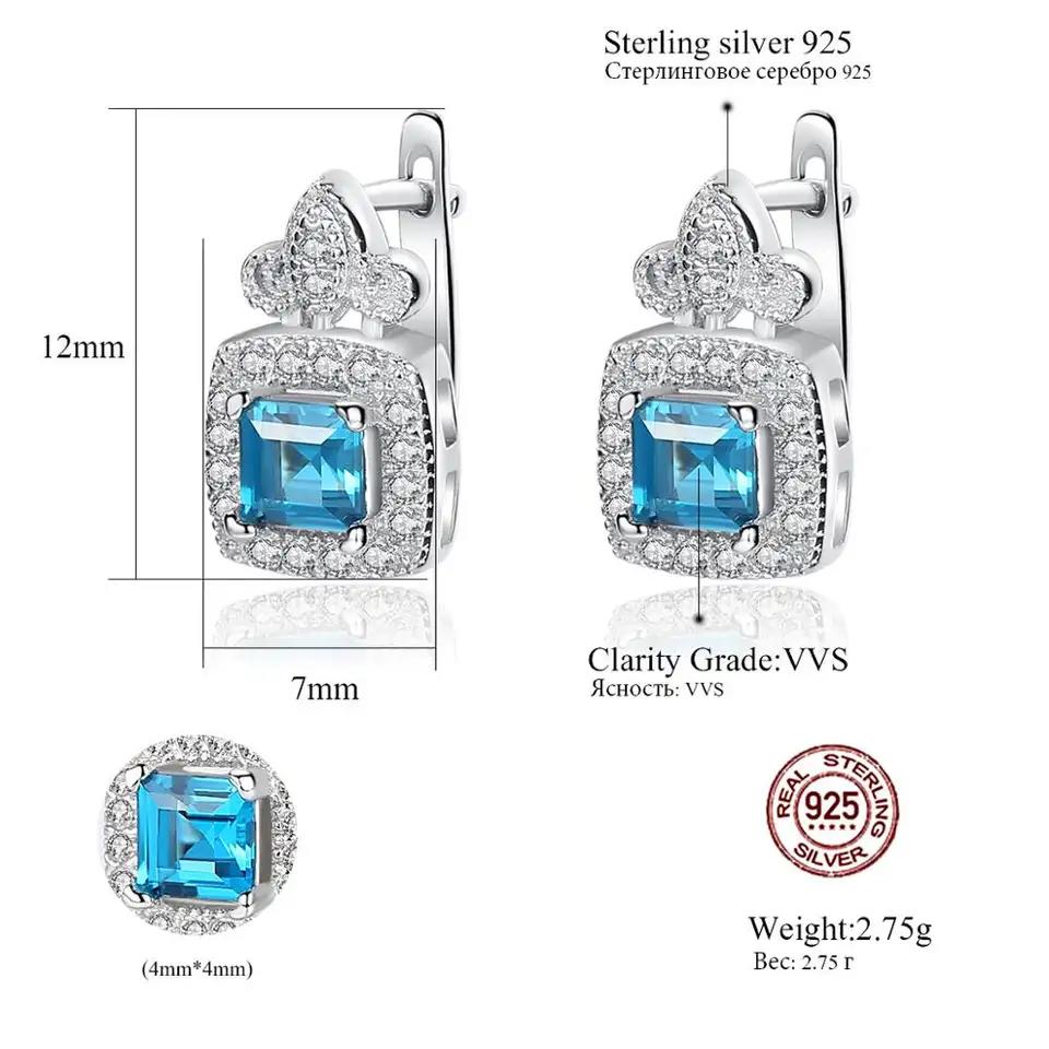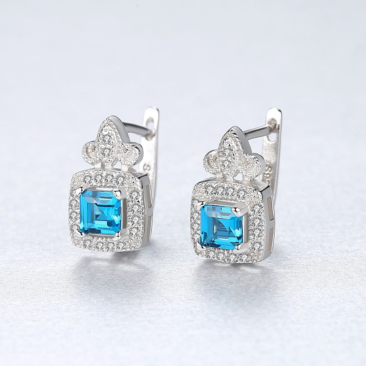 Aetolia 925 Sterling Silver 18K Gold Plated Square Sky Blue Gemstone Halo CZ Diamond Hoop Earrings SE0105