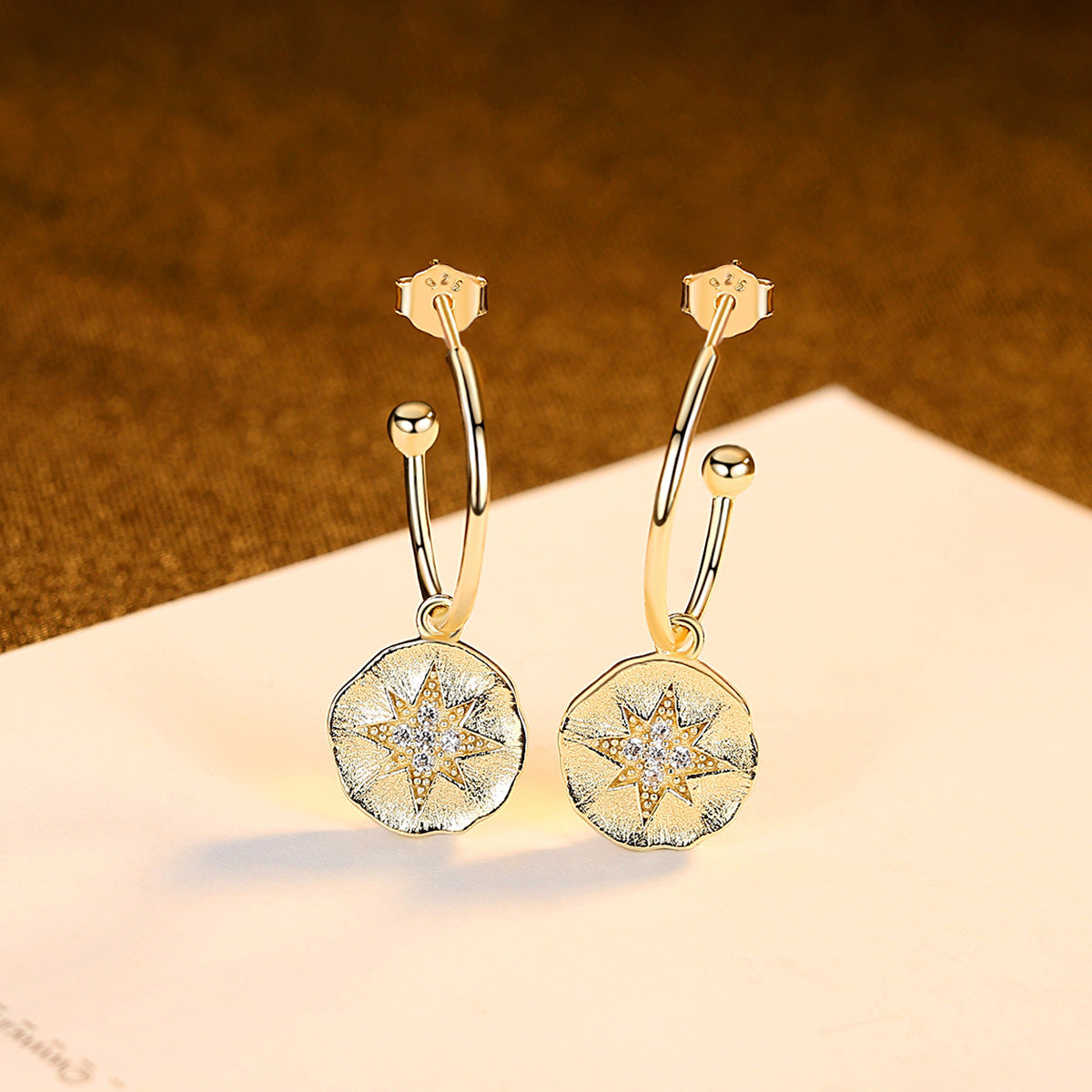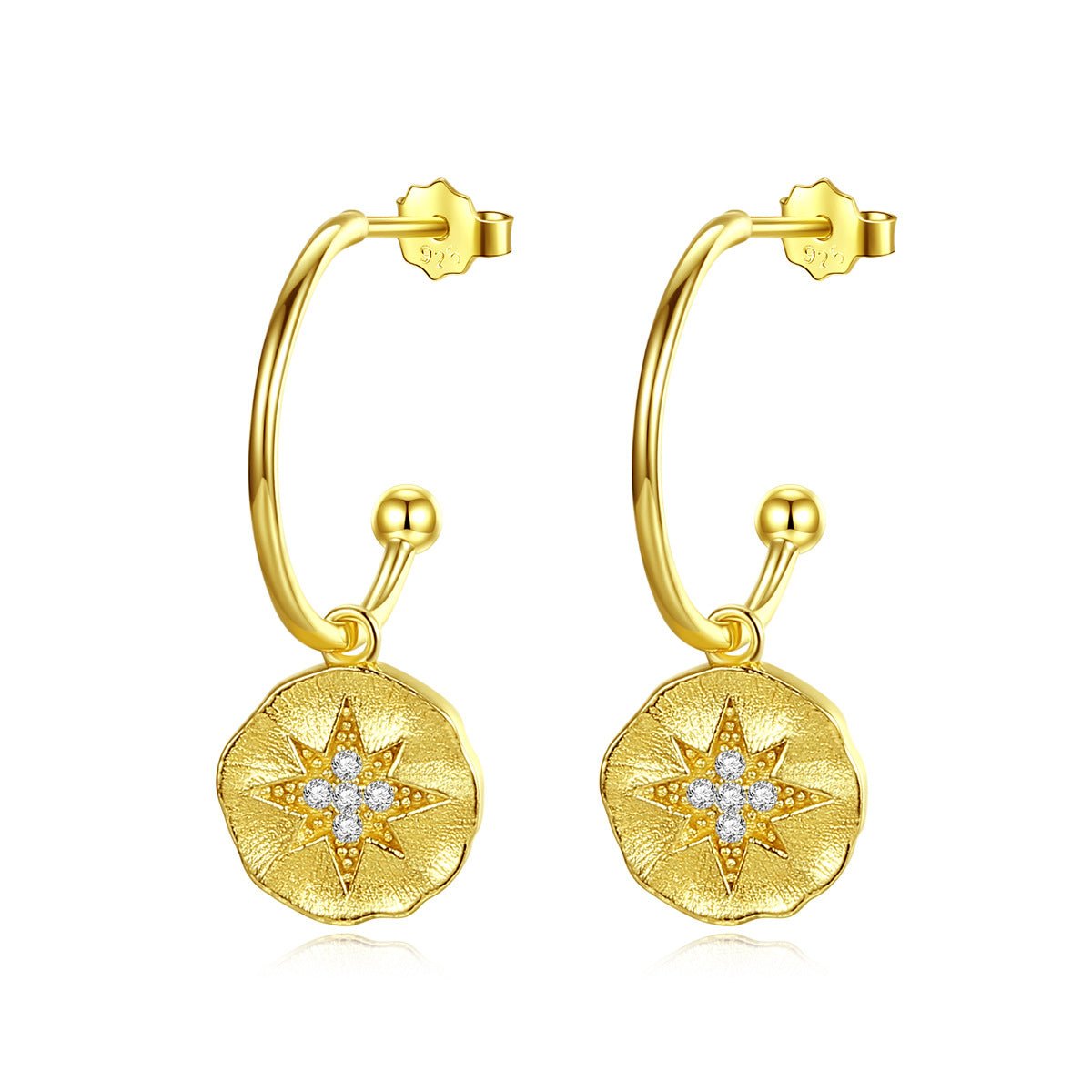 Aetolia 925 Sterling Silver 18K Gold Plated Star Open Dangle Hoop Earrings SE0496
