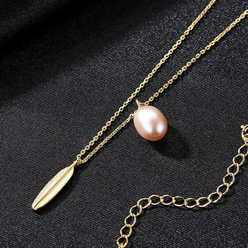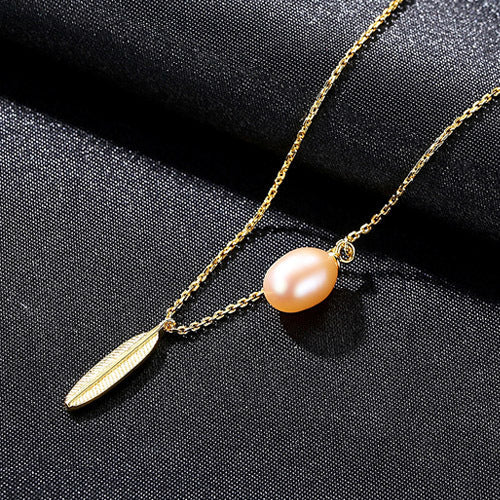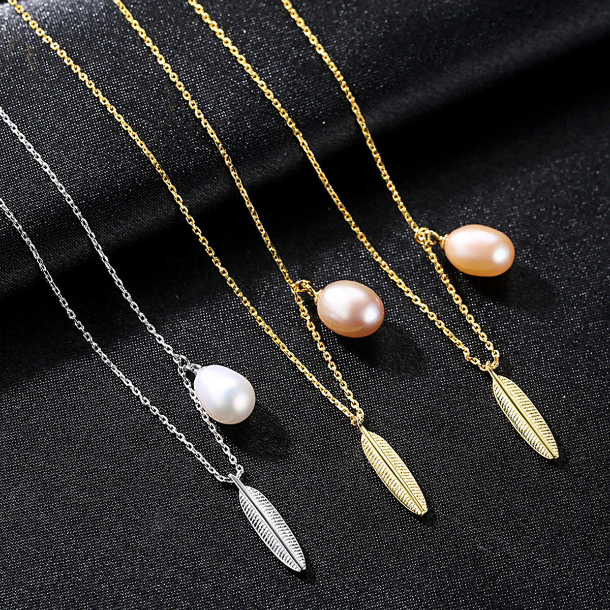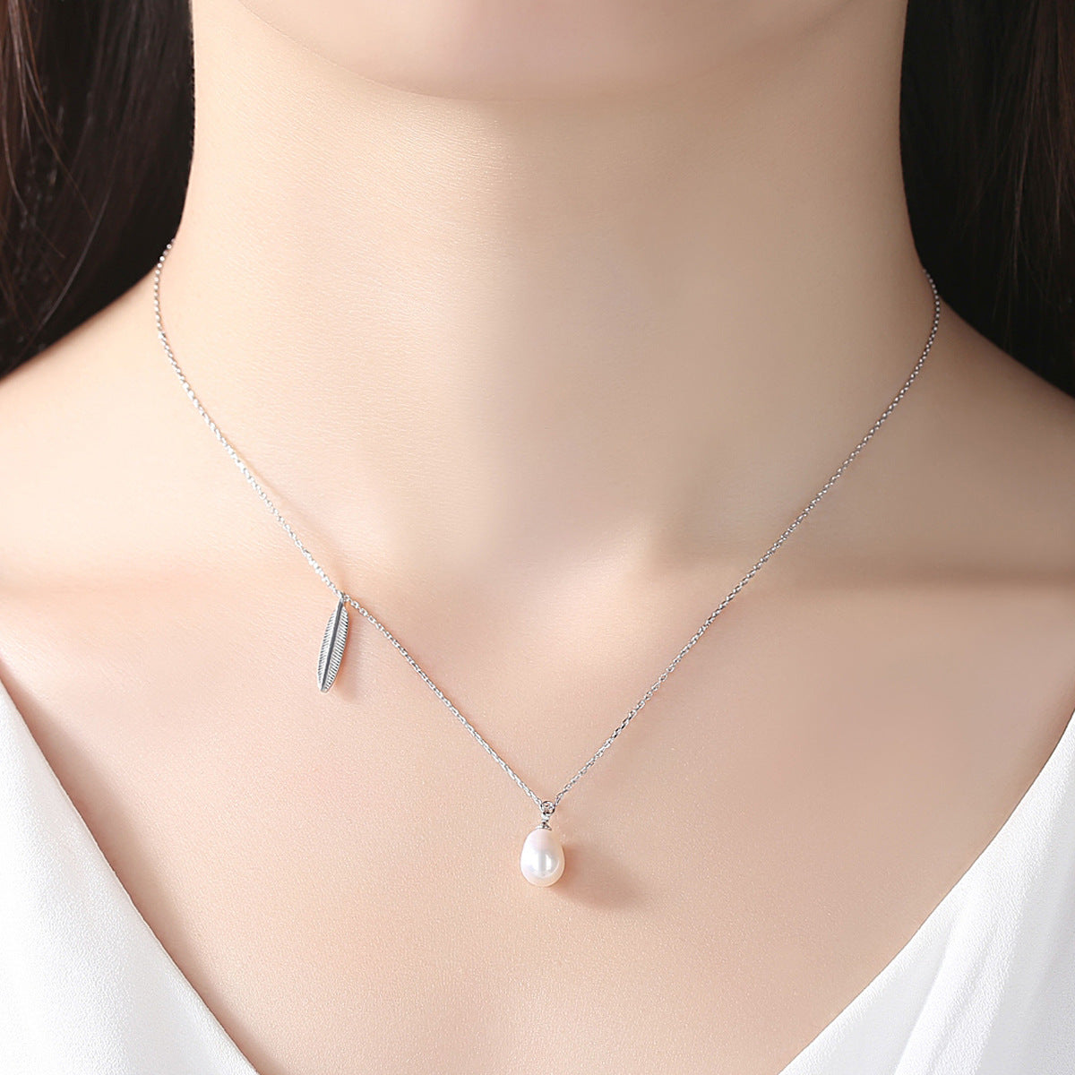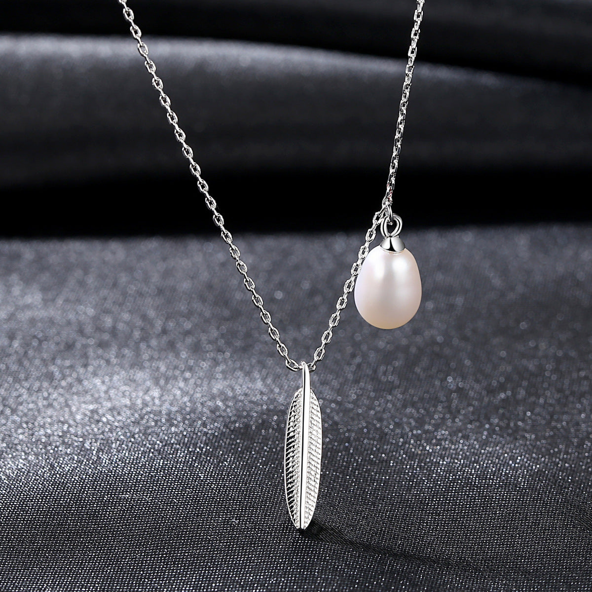 Aetolia 925 Sterling Silver Natural Freshwater Pearl Necklace Elegant Feather Pendant Necklace FN0143