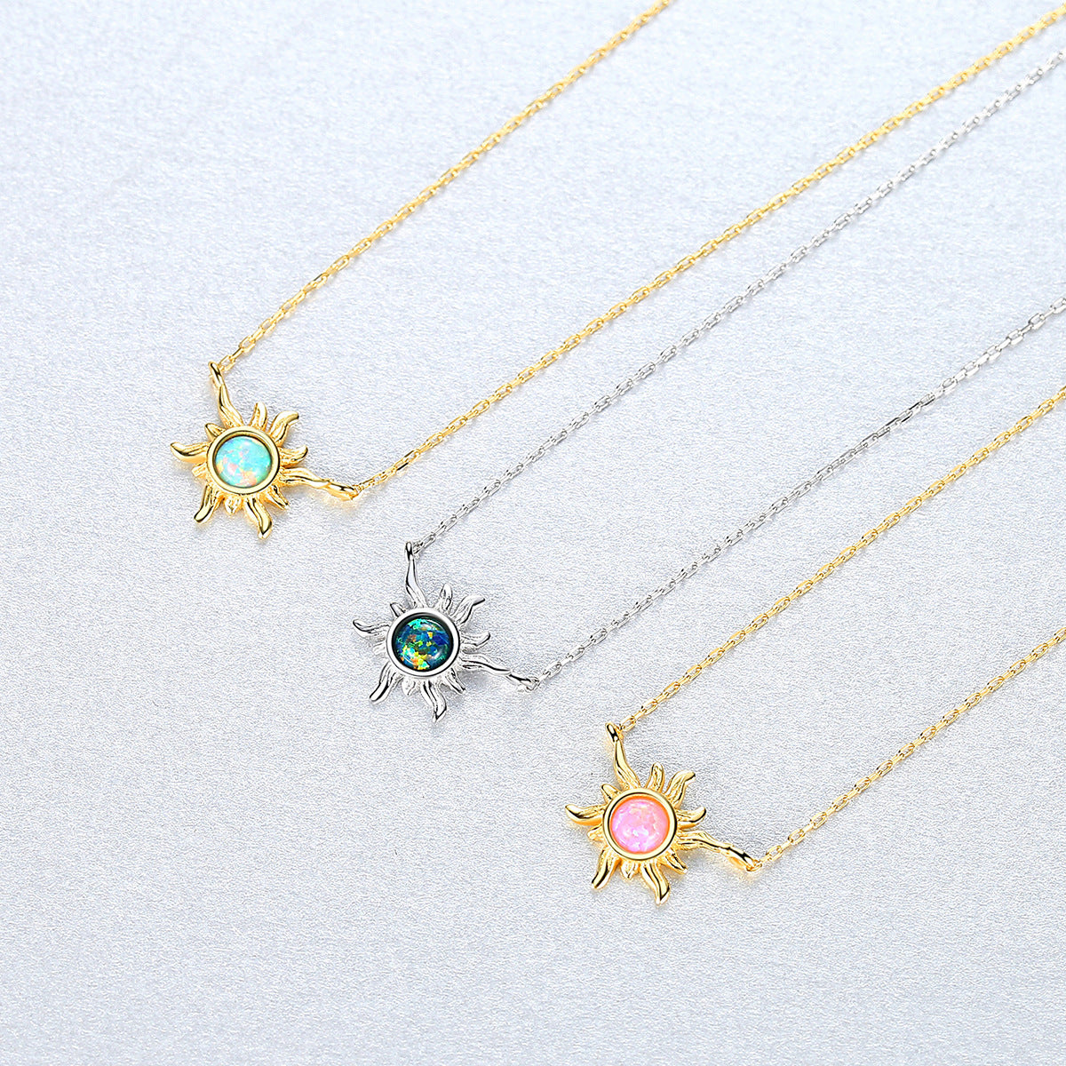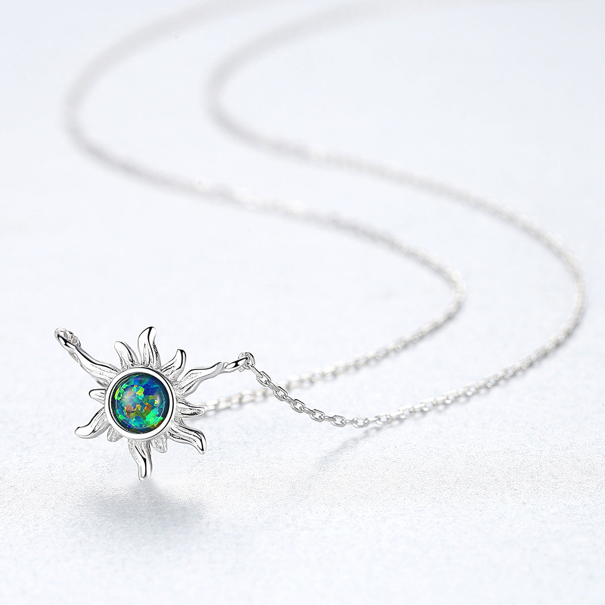 Aetolia 925 Sterling Silver Opal Necklace Sun Opal Pendant Necklace SN0371