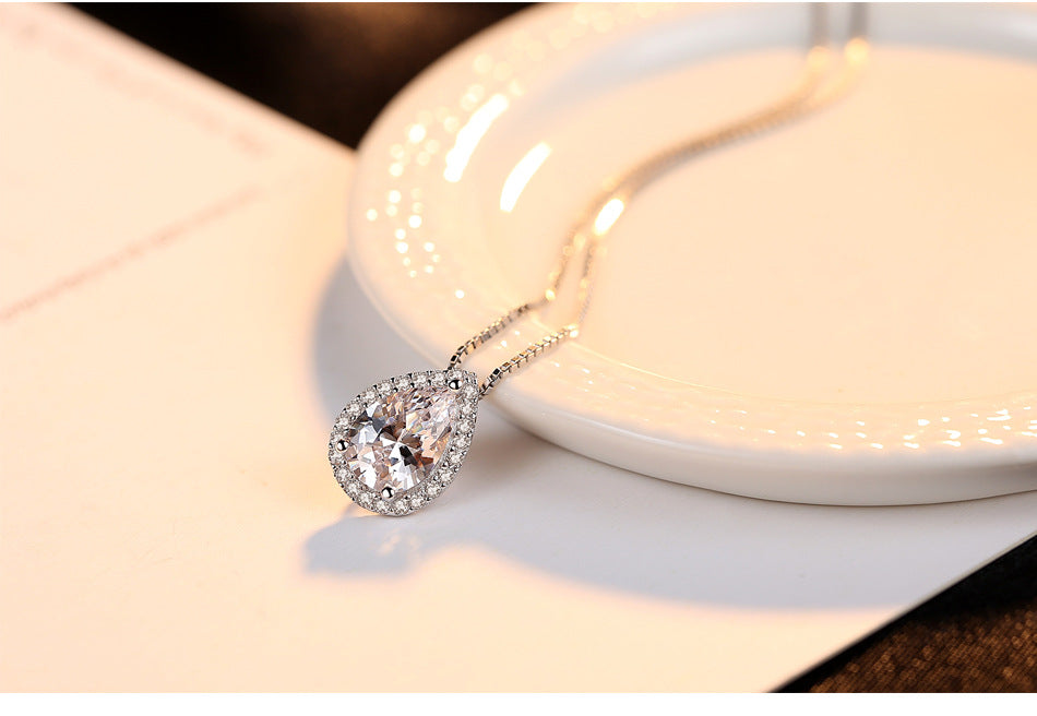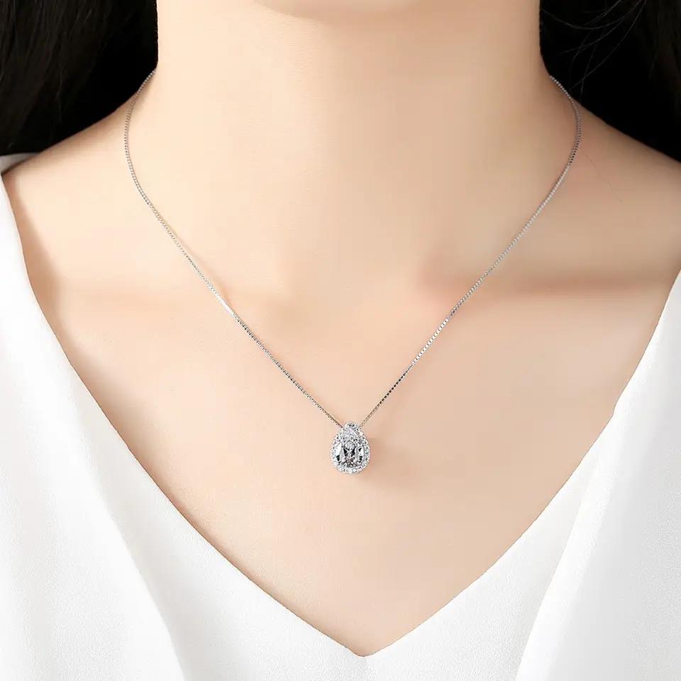 Aetolia 925 Sterling Silver 18K Gold Plated Teardrop Halo Pendant Necklace SN0026
