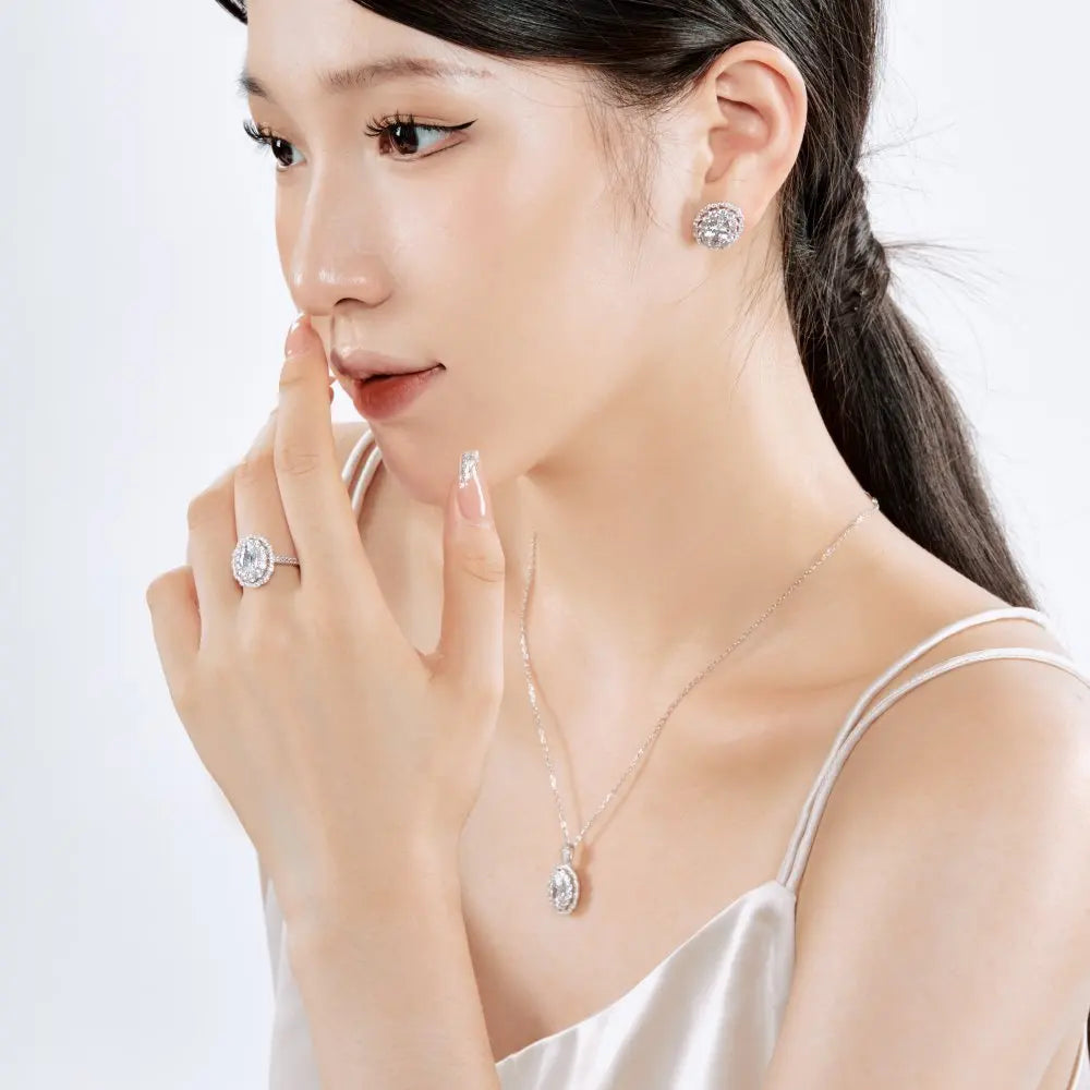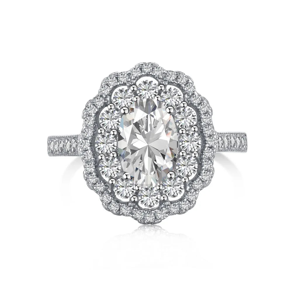 Aetolia Top End Collection Rhodium Plated 925 Sterling Silver ring Diamond Sparkling Big Stone Flower Eternity 5A Zirconia Rings