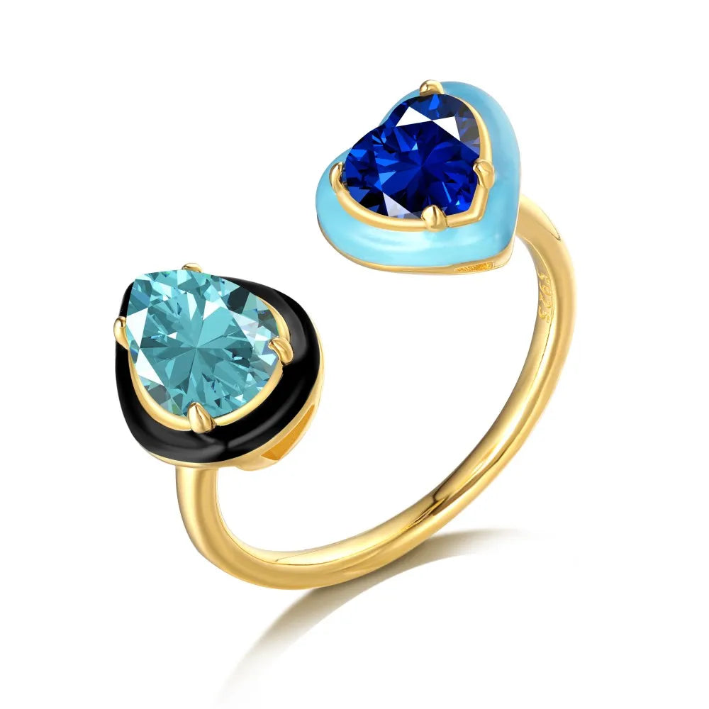 Aetolia Trendy Enamel Colorful Jewelry Bling Cz Cubic Zirconia 925 Sterling Silver Ring Design Open Adjustable Rings For Girls Women