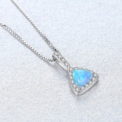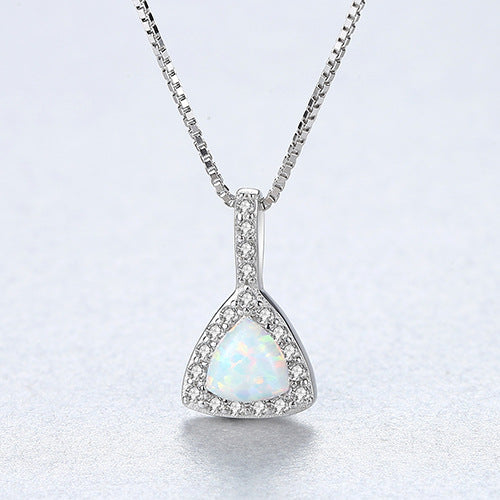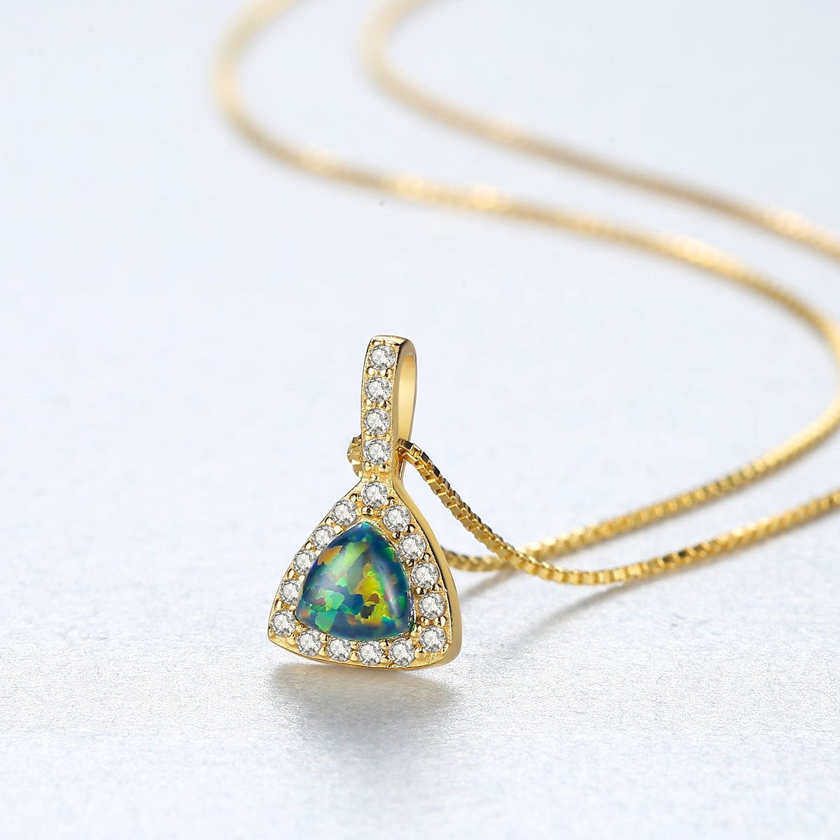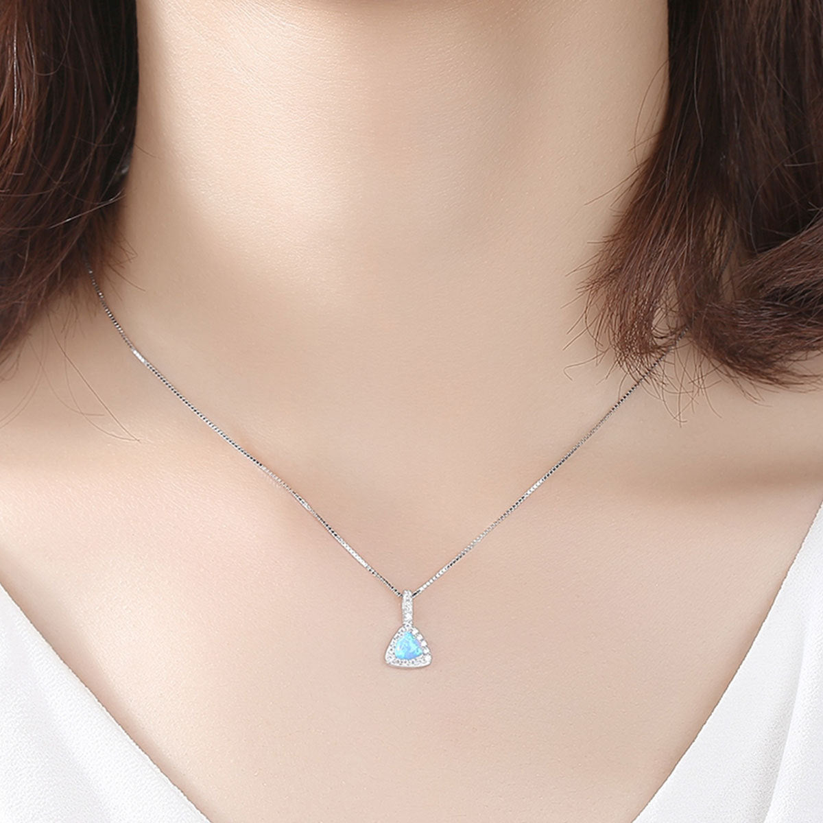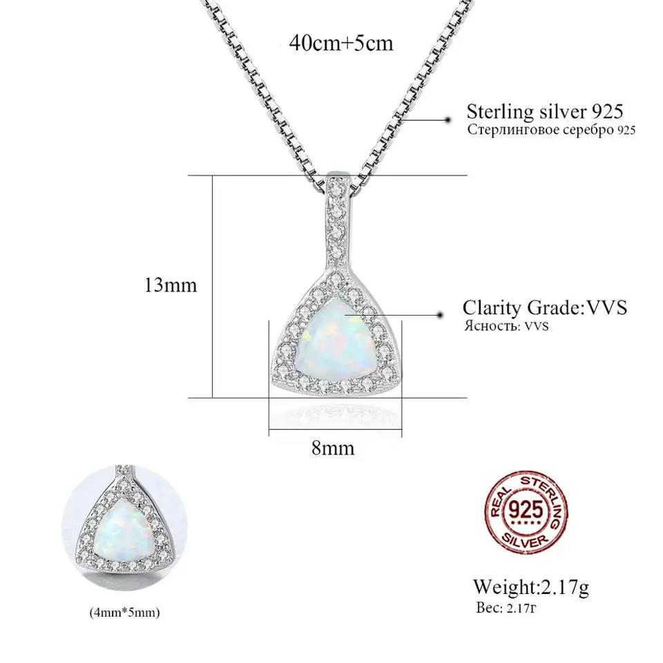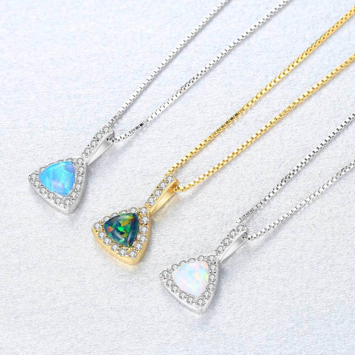 Aetolia 925 Sterling Silver Opal Necklace Triangle Halo CZ Diamond Opal Pendant Necklace SN0143