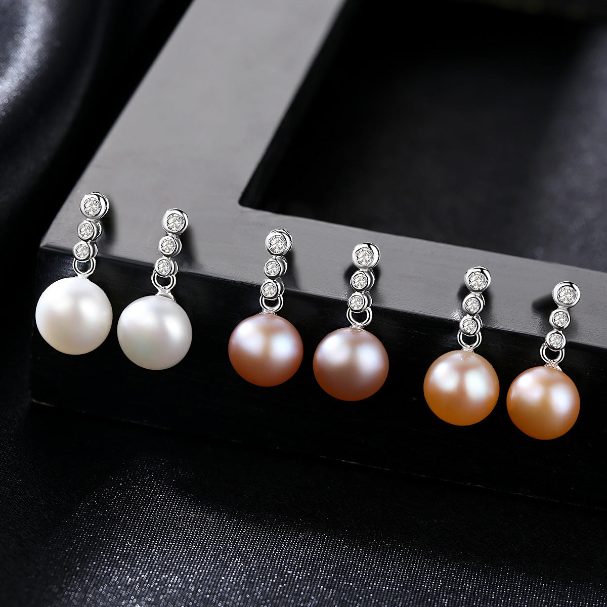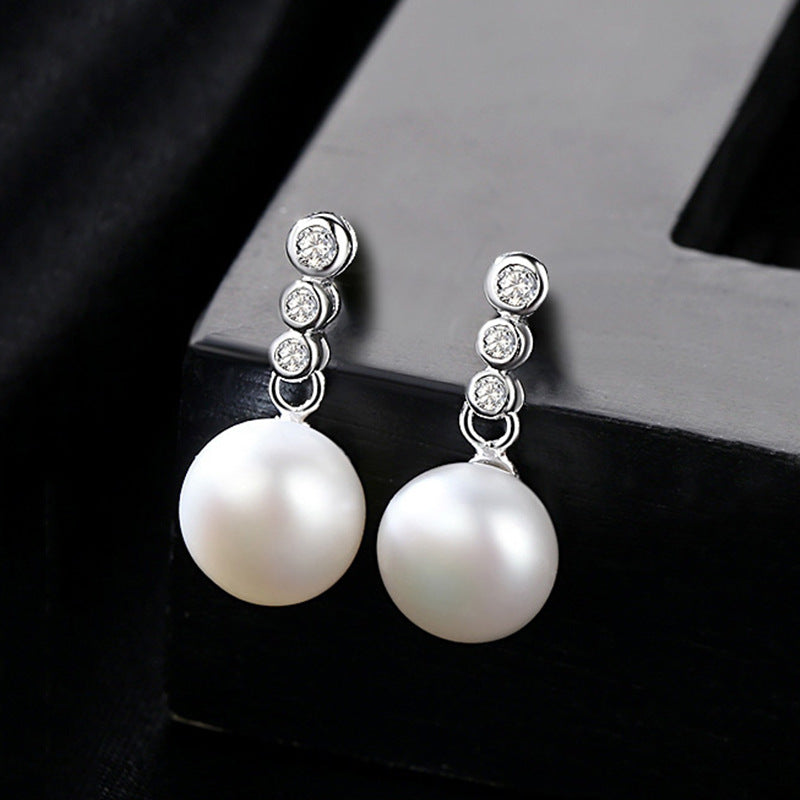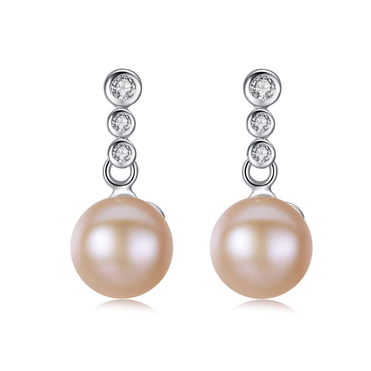 Aetolia 925 Sterling Silver Natural Freshwater Pearl Earrings 3 Bezel Set Solitaire Stud Earrings FE0021