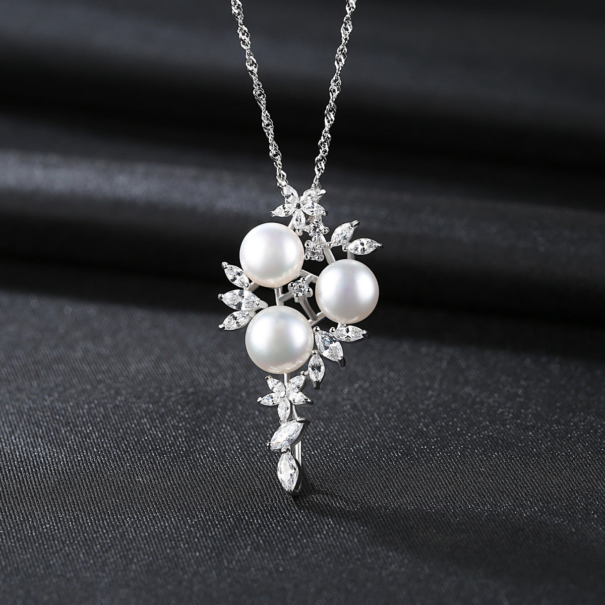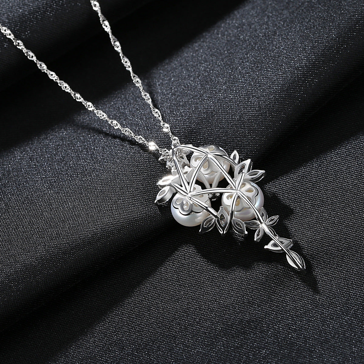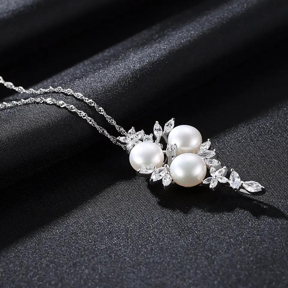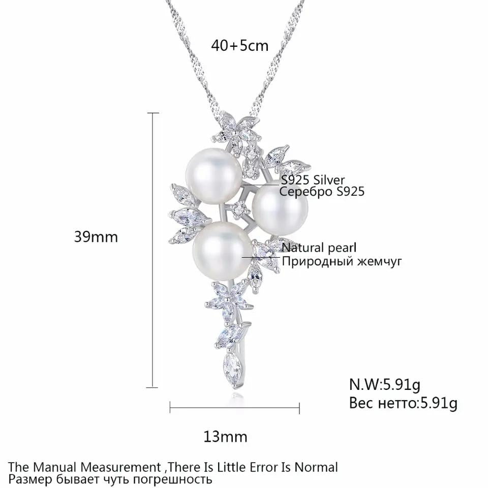 Aetolia 925 Sterling Silver Natural Freshwater Pearl Necklace Blossom 3 Pearls Pendant Necklace FN0079