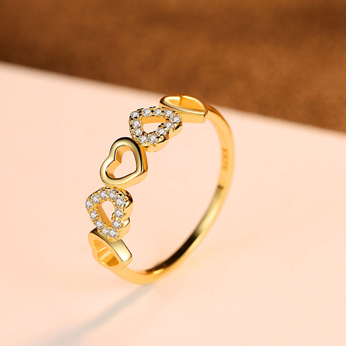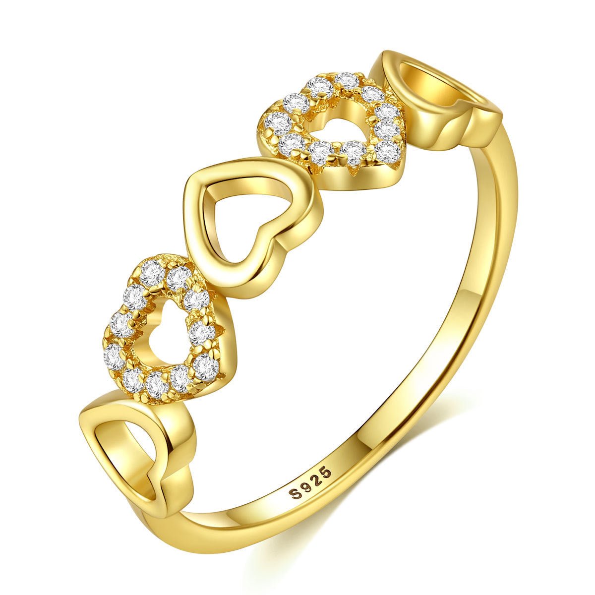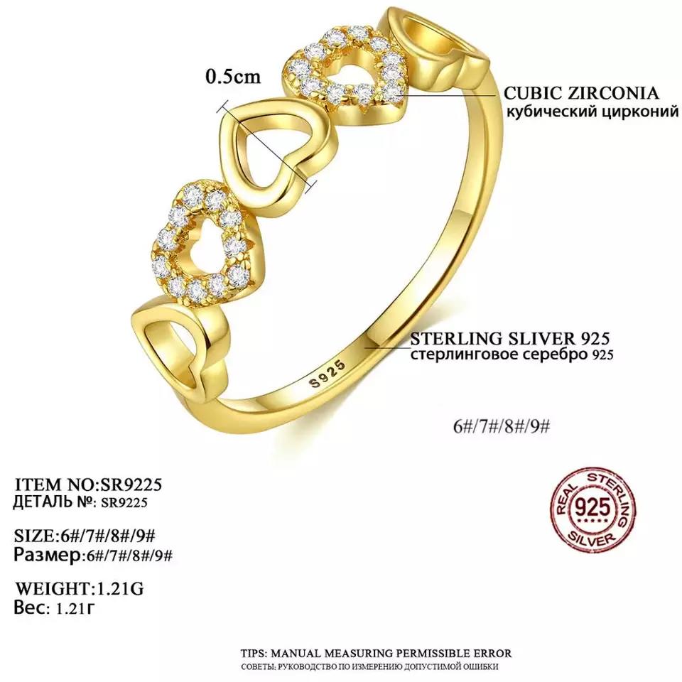Aetolia 925 Sterling Silver 18K Gold Plated Unique Hollow Out Heart CZ Diamond Ring SR9225