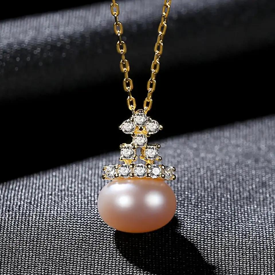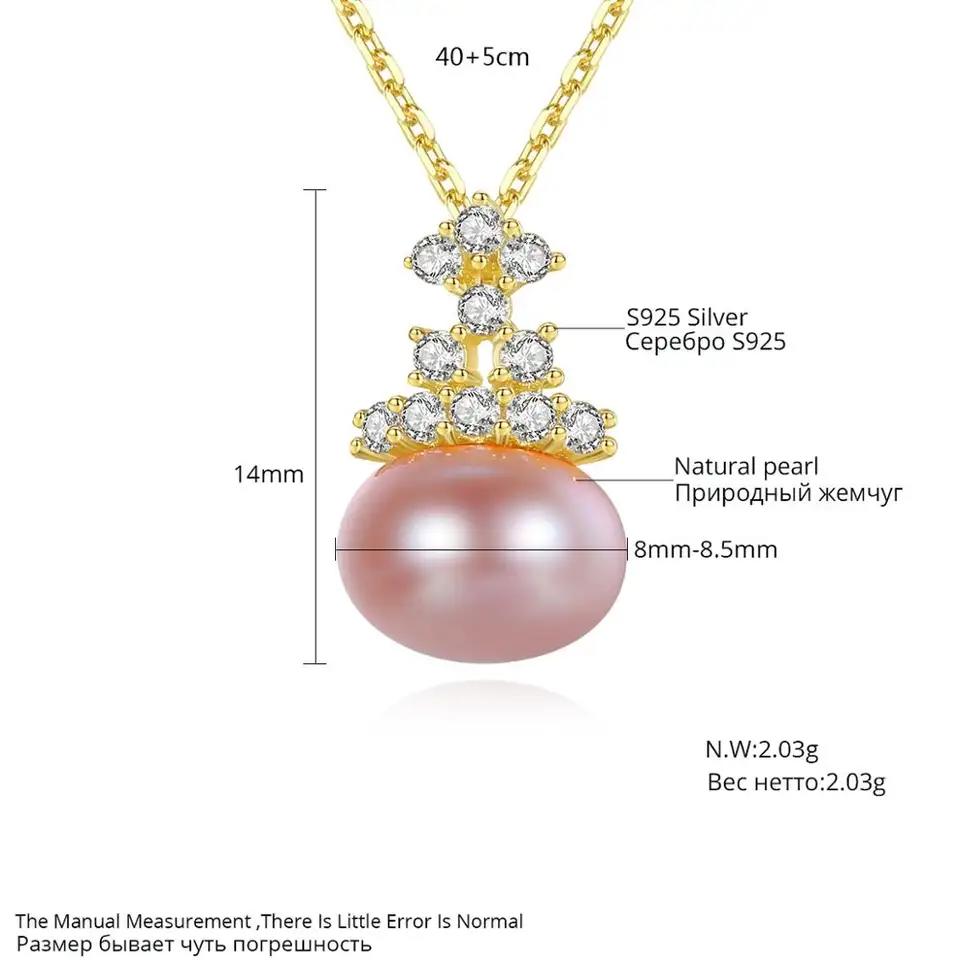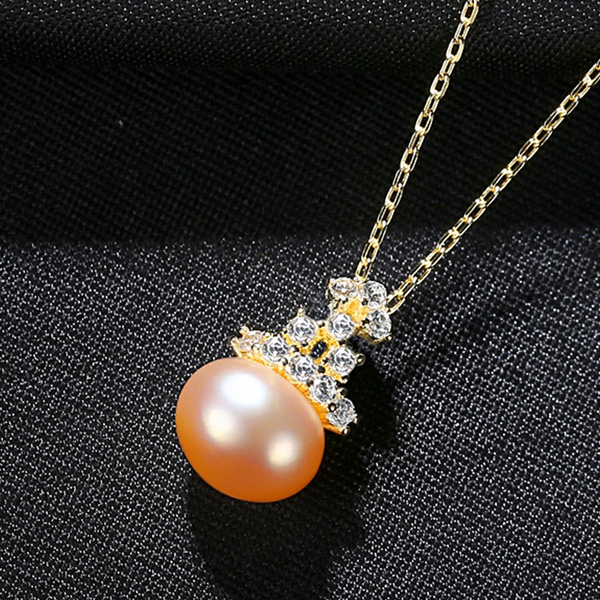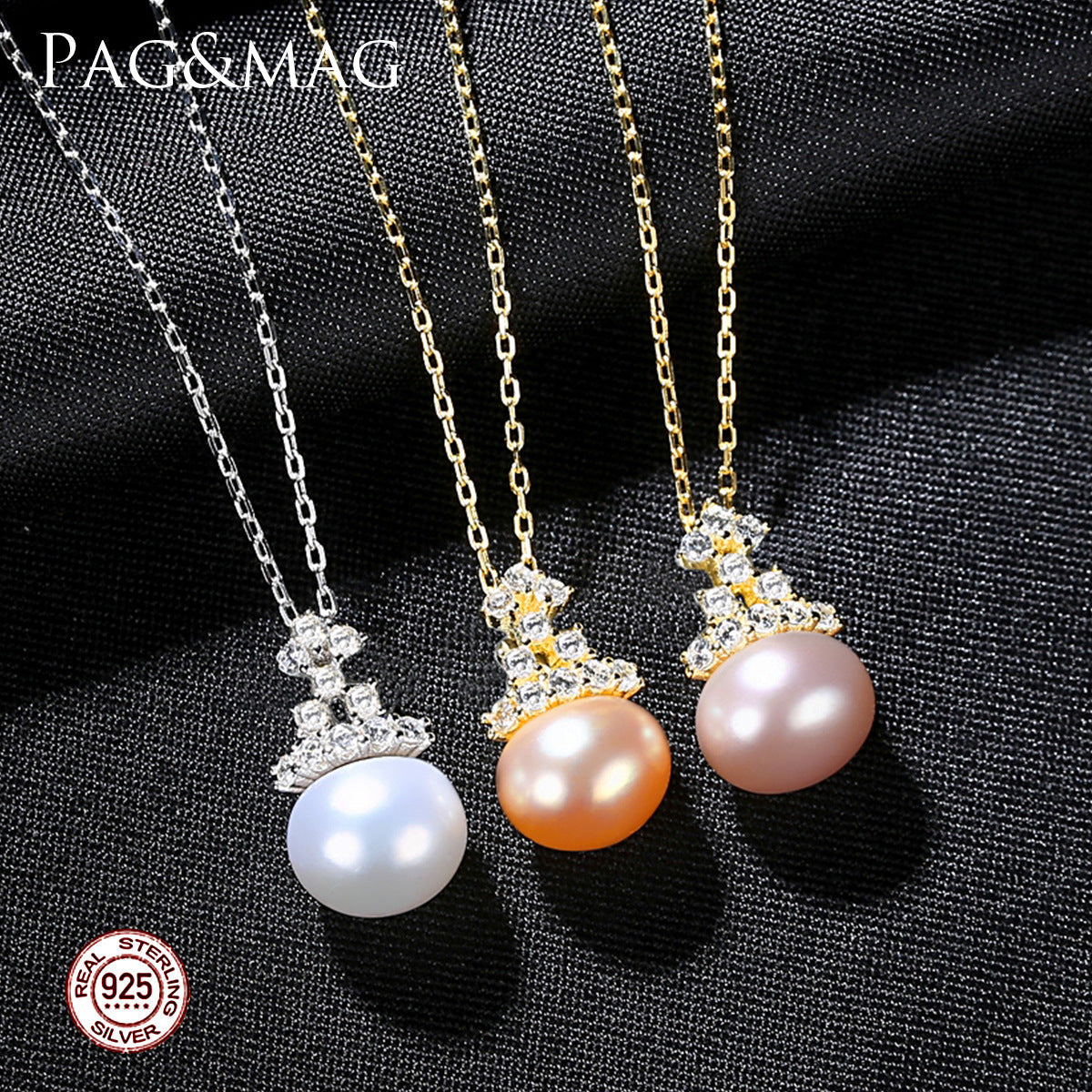 Aetolia 925 Sterling Silver Natural Freshwater Pearl Necklace Vintage Crown Oblateness Pearl Pendant Necklace FN0289