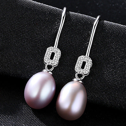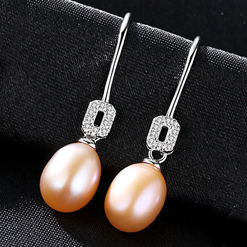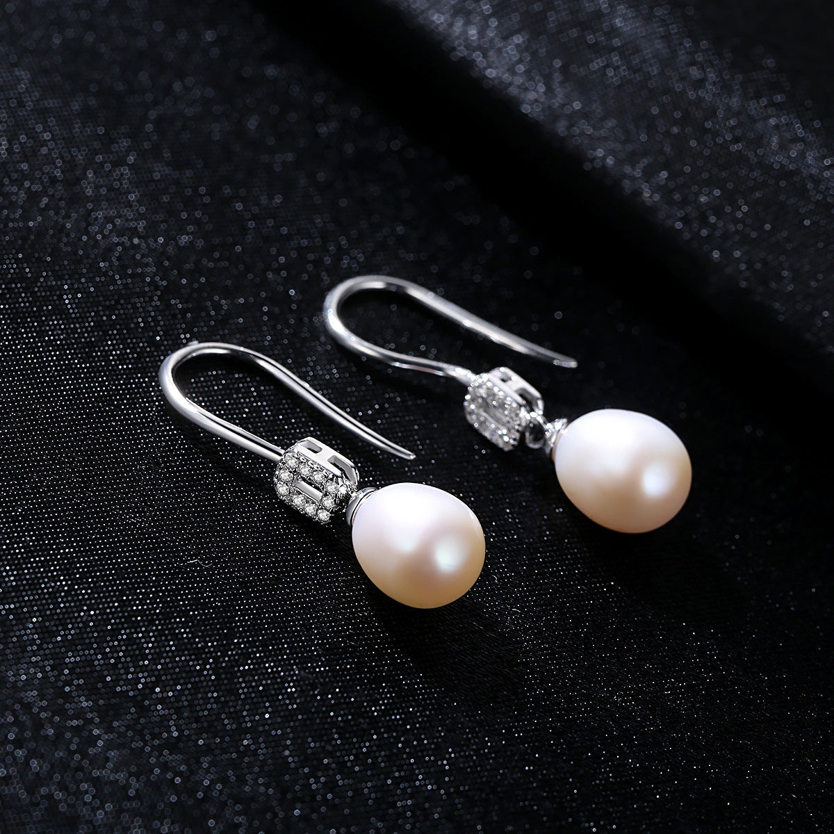 Aetolia 925 Sterling Silver Natural Freshwater Pearl Earrings Vintage CZ Diamond Dangle Drop Earrings FE0020
