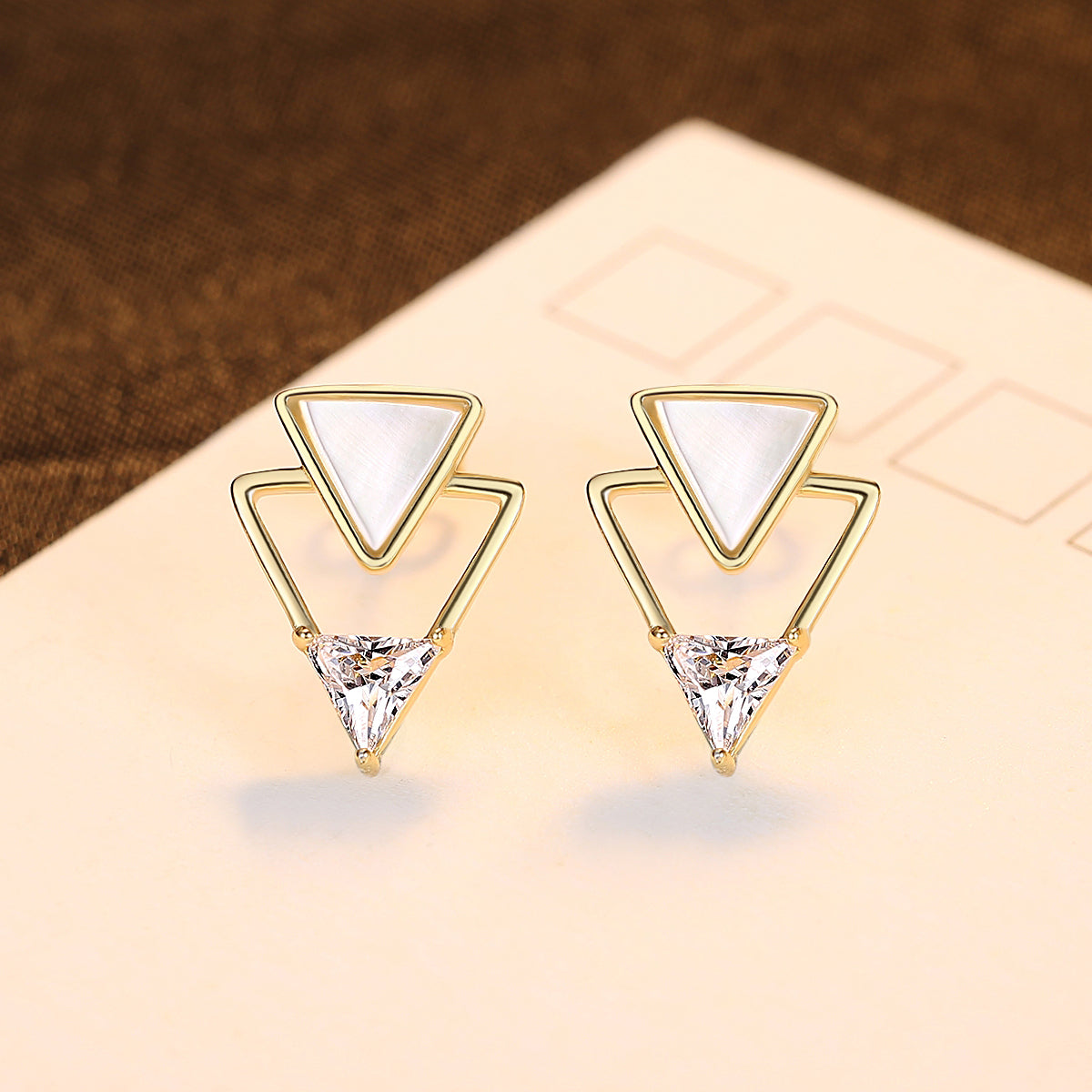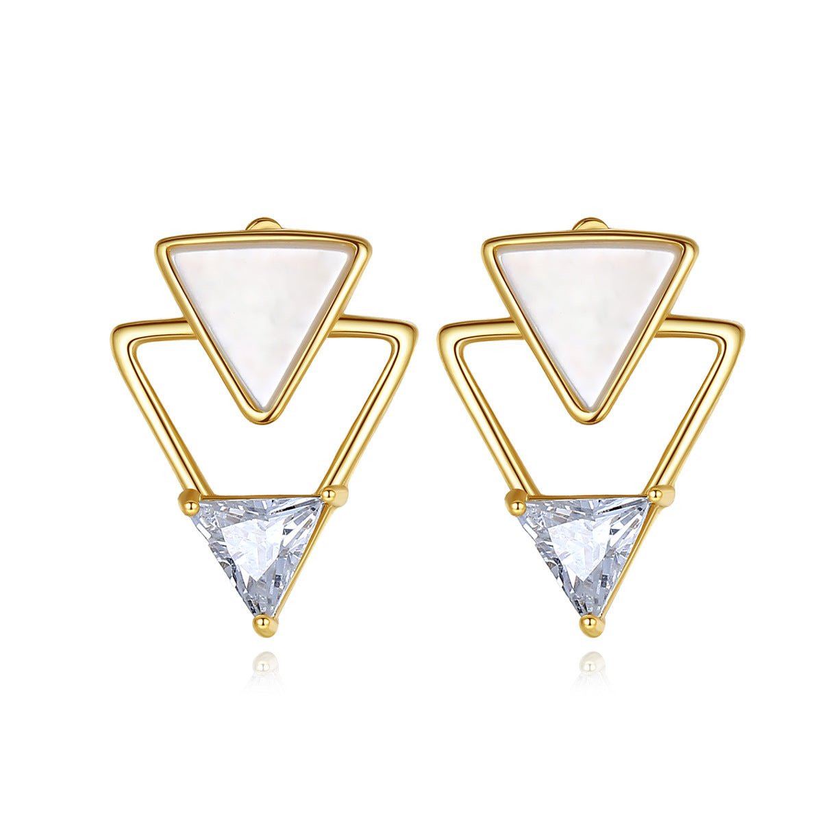 Aetolia 925 Sterling Silver 18K Gold Plated Vintage Sea Shell Inverted Triangle Stud Earrings FE-0258