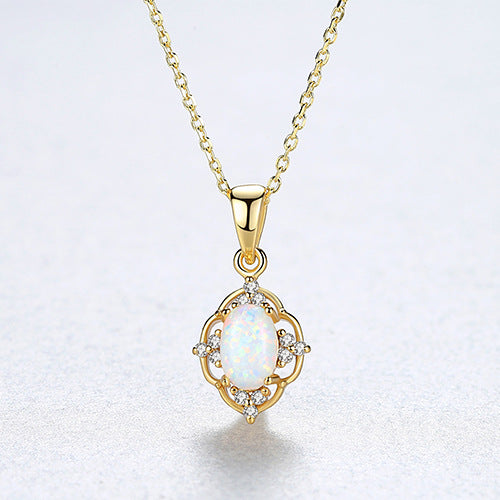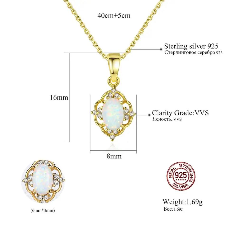 Aetolia 925 Sterling Silver Opal Necklace Vintage Style Opal Pendant Necklace SN0298