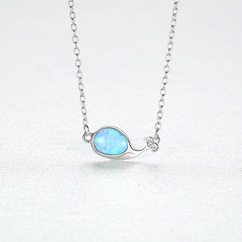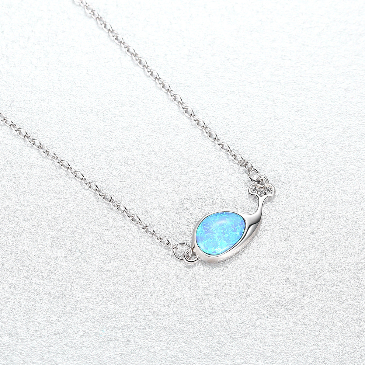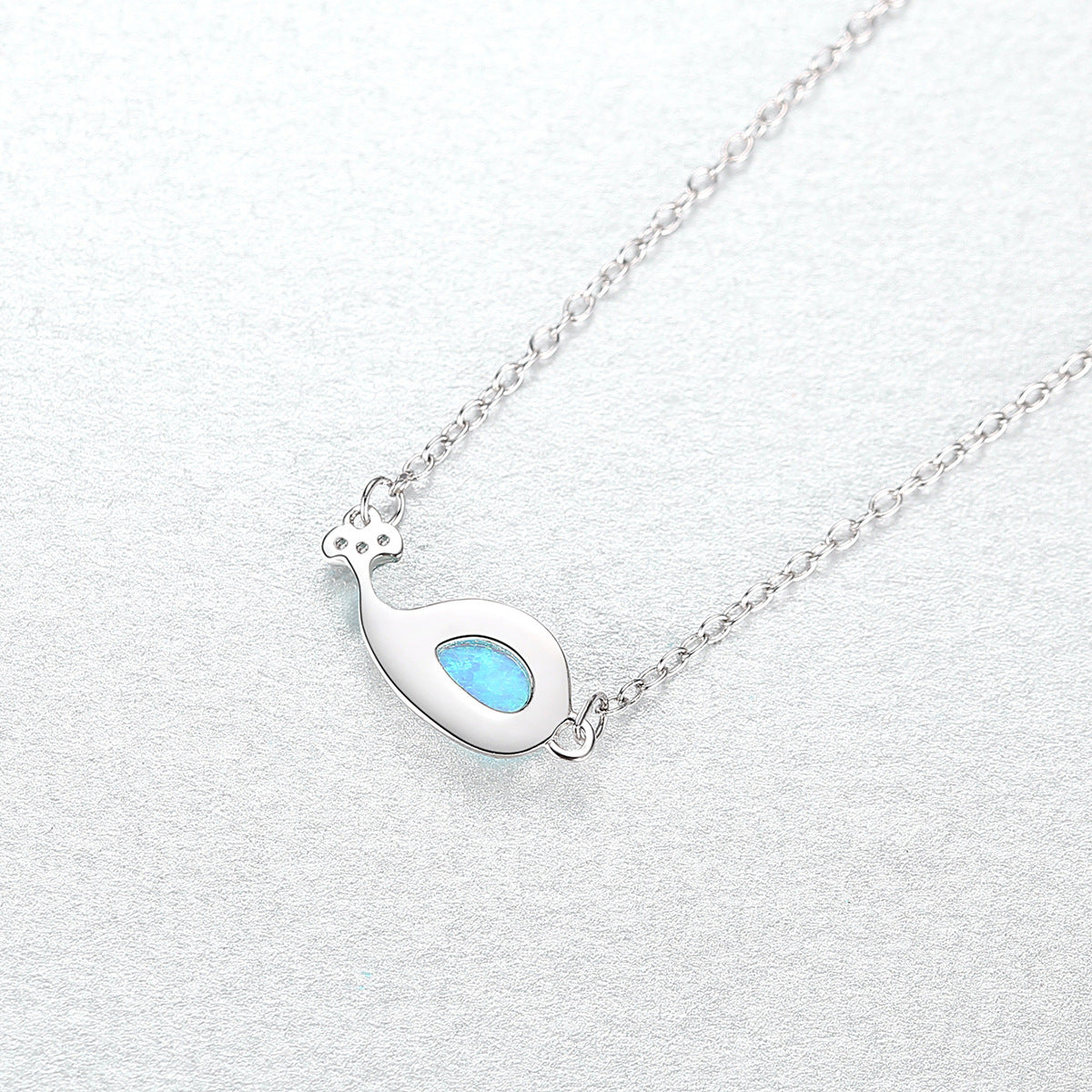 Aetolia 925 Sterling Silver Opal Necklace Whale CZ Diamond Opal Pendant Necklace SN20052805