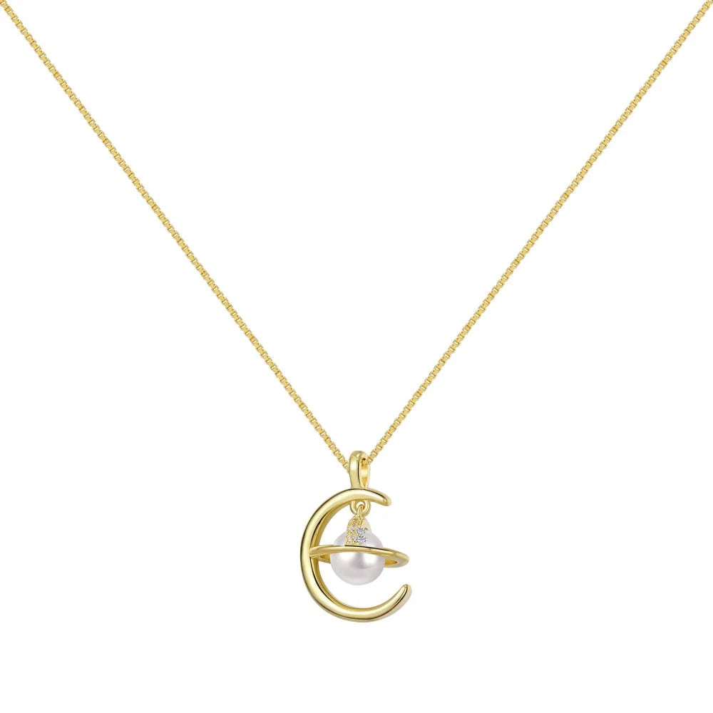 Aetolia Wholesale High Quality Non Tarnish Free Waterproof Jewelry 18K Gold Plated Necklace 925 Silver C Shape Pearl Necklaces Women