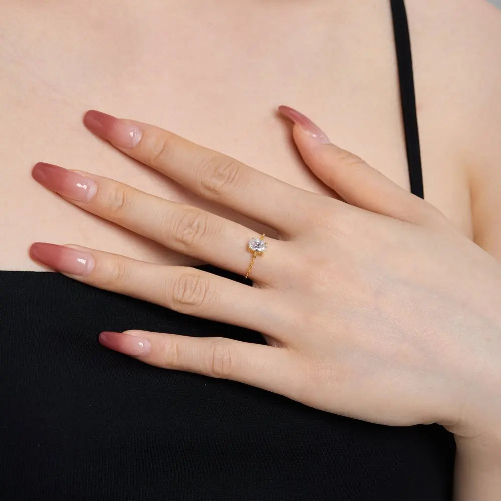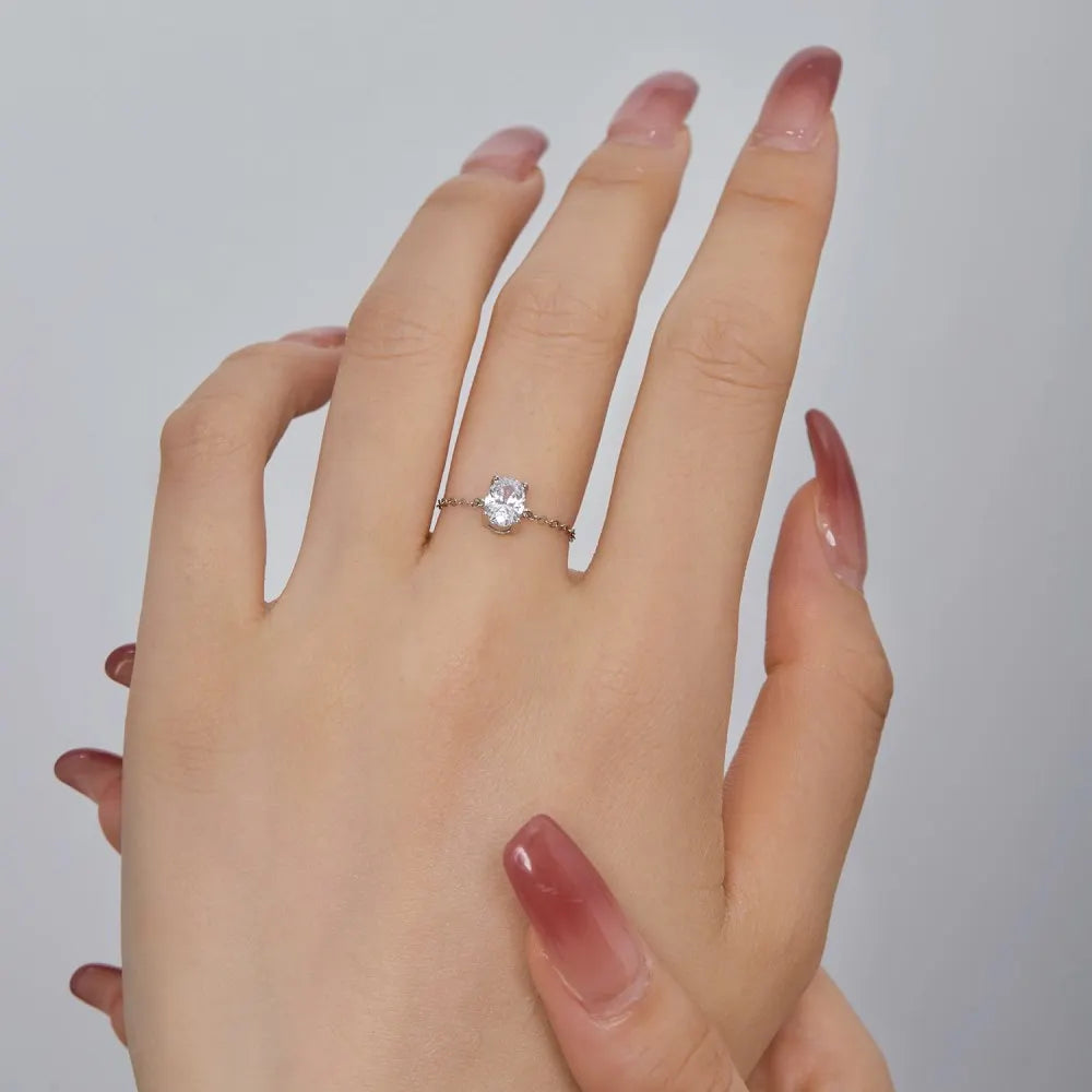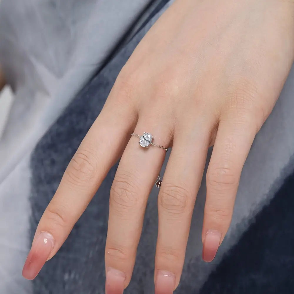 Aetolia Wholesale S925 Sterling Silver Square Ring Adjustable Chain Cubic Zirconia Stone Finger Ring Pulling Link Chain Rings For Women